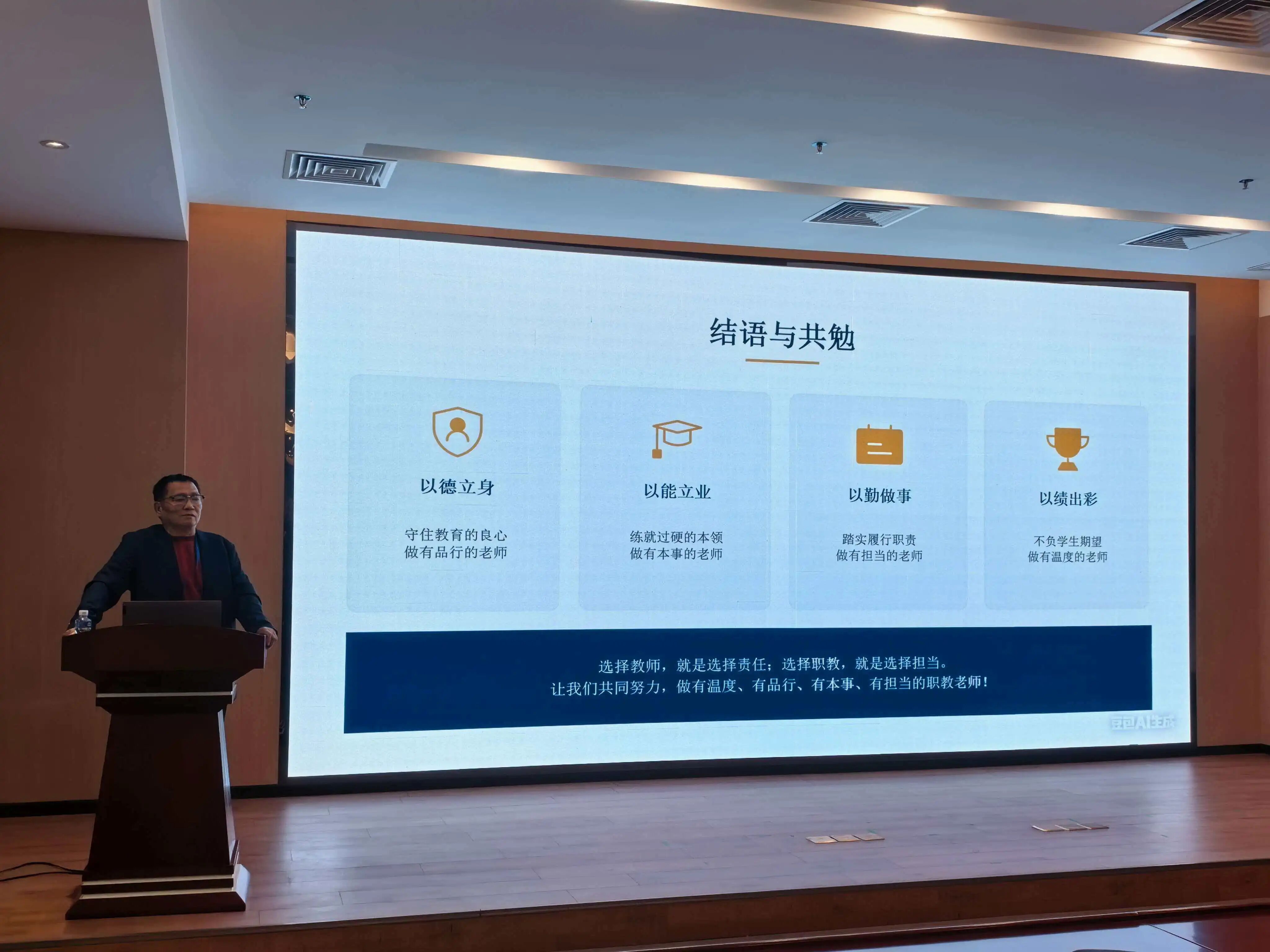 最后,胡大强校长于新学期工作总体部署中,着重强调了“德能勤绩”这一核心要求,详尽阐释了以德立身、以能立业、以勤做事、以绩出彩的全面育人理念,呼吁全体教职员工以身作则,注重品德涵养,提高专业能力,弘扬敬业精神,追求卓越绩效,携手推动学校各项工作迈向新高度。
