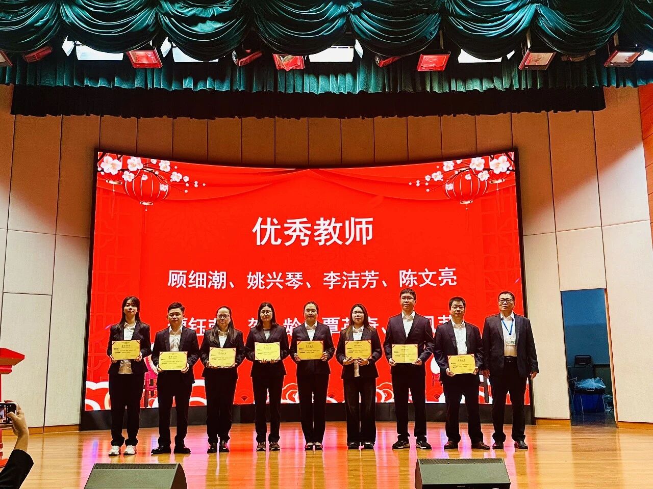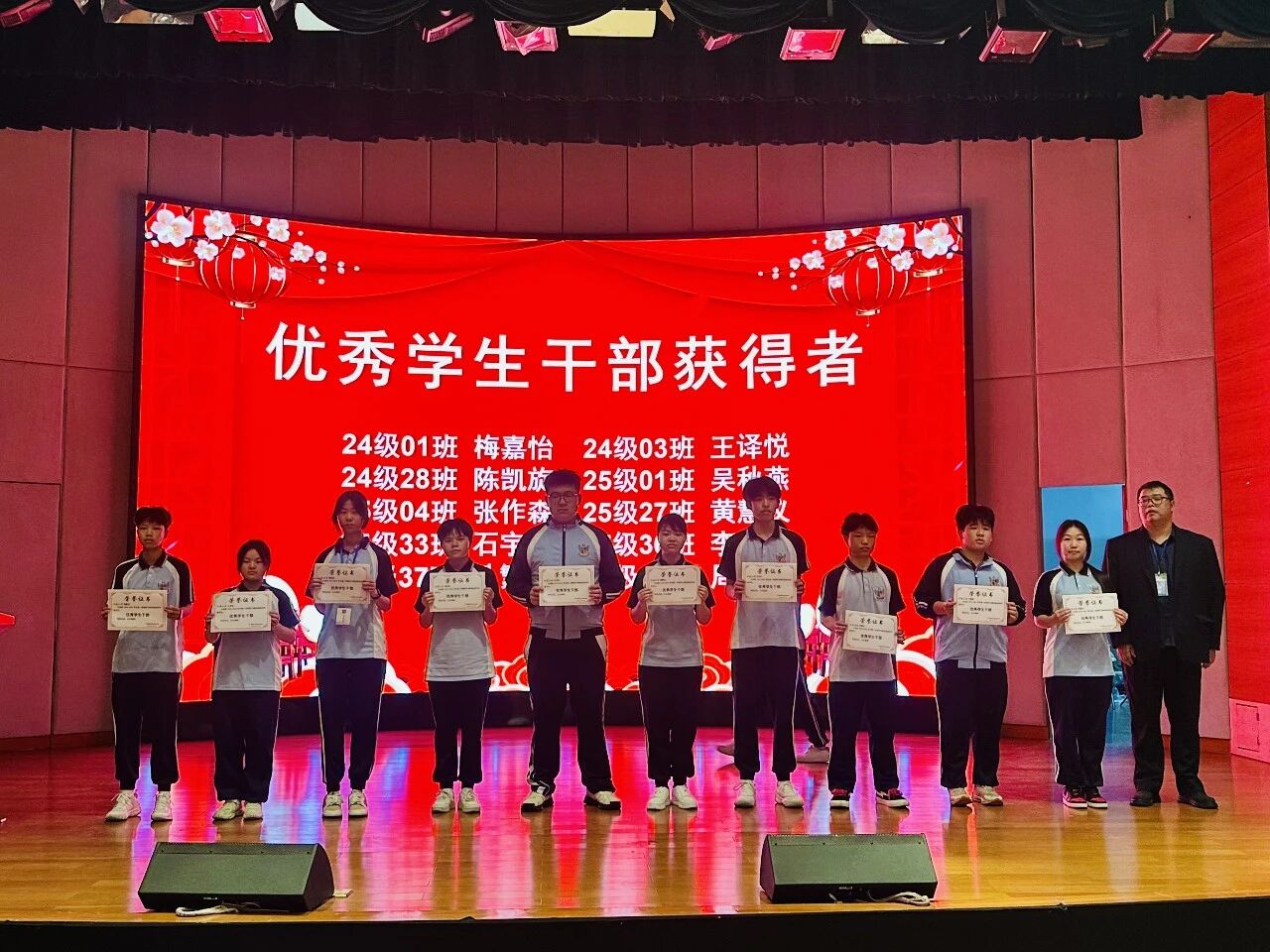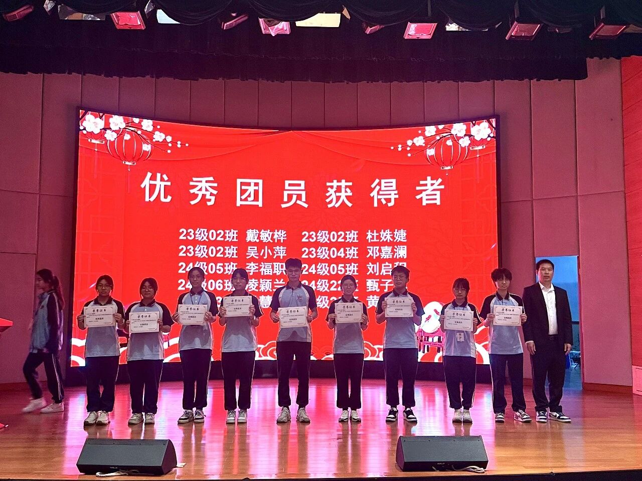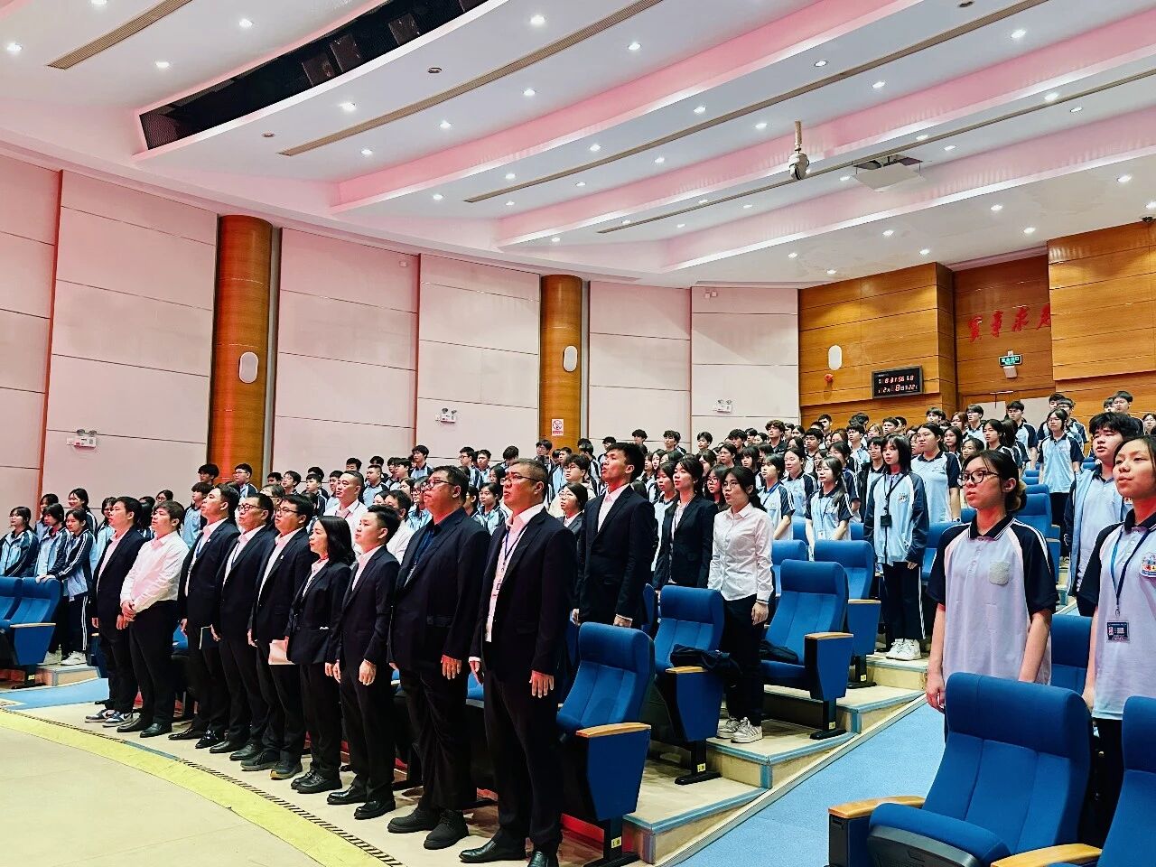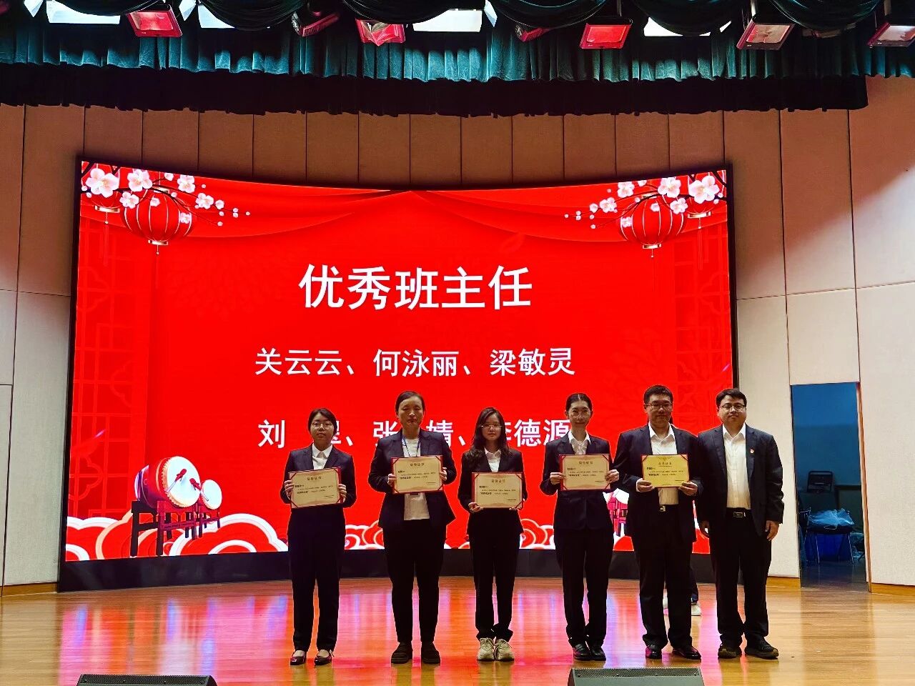 典礼现场举行隆重的表彰环节,学校依次为优秀团干部、优秀团员、优秀学生干部、优秀楼长及先进班级、优秀团支部、飞跃进步班级颁奖;同时表彰上学期优秀教育工作者、优秀班主任、优秀教师,并为取得心理健康C证的教师颁证。一批品学兼优的学生与爱岗敬业的教职工受到表彰,榜样力量激励全体师生奋勇争先。典礼结束后,各班有序观看广东省教育厅“开学第一课”直播。